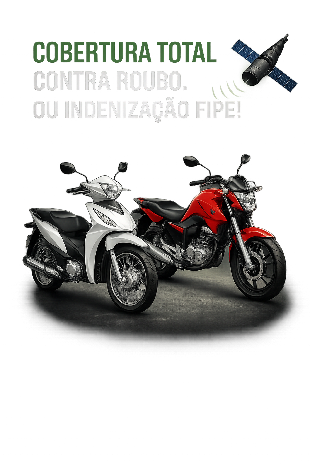 🔒 No Plano Proteção Total, caso sua moto não seja recuperada, você recebe indenização conforme a Tabela FIPE.